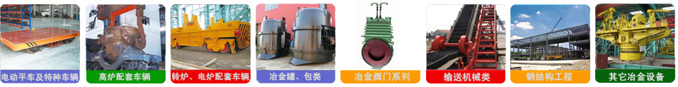 公司產(chǎn)品有ZT系列鐵水罐車、鋼包車、渣罐車、渣盤(pán)車、電動(dòng)平車、過(guò)跨車、鐵水稱量車、液壓傾翻車、廢鋼料籃車、中間罐車、修爐車、爐底車、鎳鐵礦熱爐料罐車、汽運(yùn)鐵水車以及各種鐵水罐(包)、鋼水包(罐)、渣罐、渣盤(pán)、中間罐、鋼包加蓋、龍門(mén)吊鉤、鋼包傾翻機(jī)、鋼包回轉(zhuǎn)臺(tái)等產(chǎn)品。